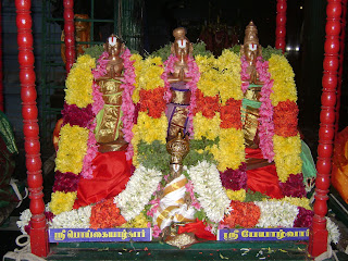 Pagal Pathu/Raa Pathu: Vaikunta Ekadasi is celebrated for 21 days in Srirangam. The First 10 days preceding Vaikunta Ekadasi is called Pagal Pathu. Then comes the important Vaikunta Ekadasi Day and then the 10 days following this day is called Raa Pathu. As the names suggest, Pagal pathu is when the festivities are done during the day. Raa pathu has festivities during the night. On the day of Vaikunta Ekadasi, the Lord is decorated grandly (it is a popular belief that once upon a time, the now famous 'Orloff' Russian Diamond adorned the Lord) and carried to the Parama Pada Vaasal, which is the northern gate of the temple. This is the 'Vaikunta Vaasal' and is only opened once a year - on this day. The crowd that comes to witness this event has to be seen to be believed. It is a common belief that the real Vaikunta vaasal in heaven (Heaven's doors) open on this day. Nam-Azhwar attained moksha today. It also a popular belief that people who die today are destined for moksha. At the end of the first 15 days of thiurpaavai, Andal would have woken up all her thozhi's. Tomorrow, on Dwadesi, she would request permission from Dwara-Balakars (Guardian's of Vishnu's door) to enter the lord's abode and visit him. ("Nayakanai nindra nandagopan'udaiya kovil kaapane, kodi thondrum thorana vaayil kaapane, manikathavam thaal thiravai")